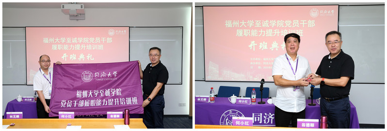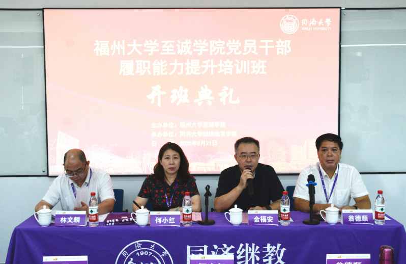8月21日上午,福州大学至诚学院党员干部履职能力提升培训班开班典礼在同济大学四平路校区泰禾楼605教室举行。同济大学继续教育学院院长金福安,福州大学至诚学院院领导何小红、林文麟、翁德顺、雷晓明、张栋、李玲、苏童、邵艳群出席仪式。福州大学至诚学院50名党员干部参加本次为期六天的培训。