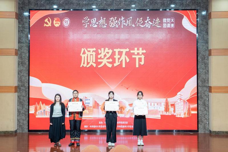 为贯彻落实党的二十届三中全会精神,巩固深化主题教育和党纪学习教育成果,扎实推进深入贯彻中央八项规定精神学习教育,5月20日,福州大学至诚学院在科报厅举办“学思想,强作风,促奋进”微党团课大赛决赛。决赛现场邀请福州大学党委组织部副部长赵鹏、福州市鼓楼团区委书记翁安妮、福建农林大学金山学院党务工作部负责人李佳曦担任大赛评委。学院党委常务副书记何小红、党委副书记林文麟以及学院各级党团工作负责人和部分师生代表共计近300人到场观赛。