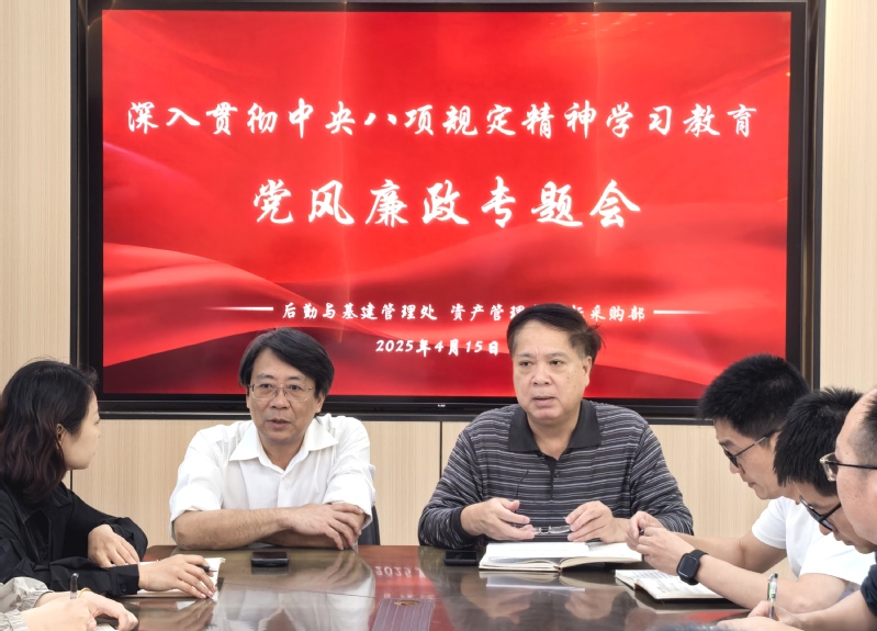 为扎实开展深入贯彻中央八项规定精神学习教育,进一步加强党风廉政建设,增强党员干部廉洁自律意识,2025年4月15日下午,院纪委书记翁德顺到后勤与基建管理处三楼会议室召开党风廉政专题教育会。后勤与基建管理处、资产管理与招标采购部全体党员干部及重点关键岗位人员参加会议,会议由雷晓明副院长主持。